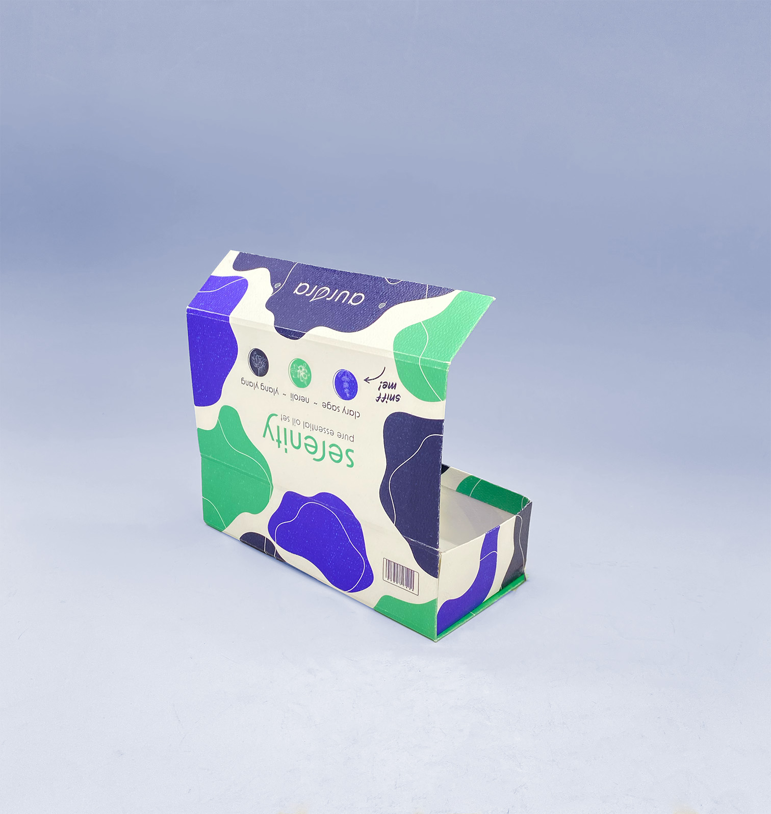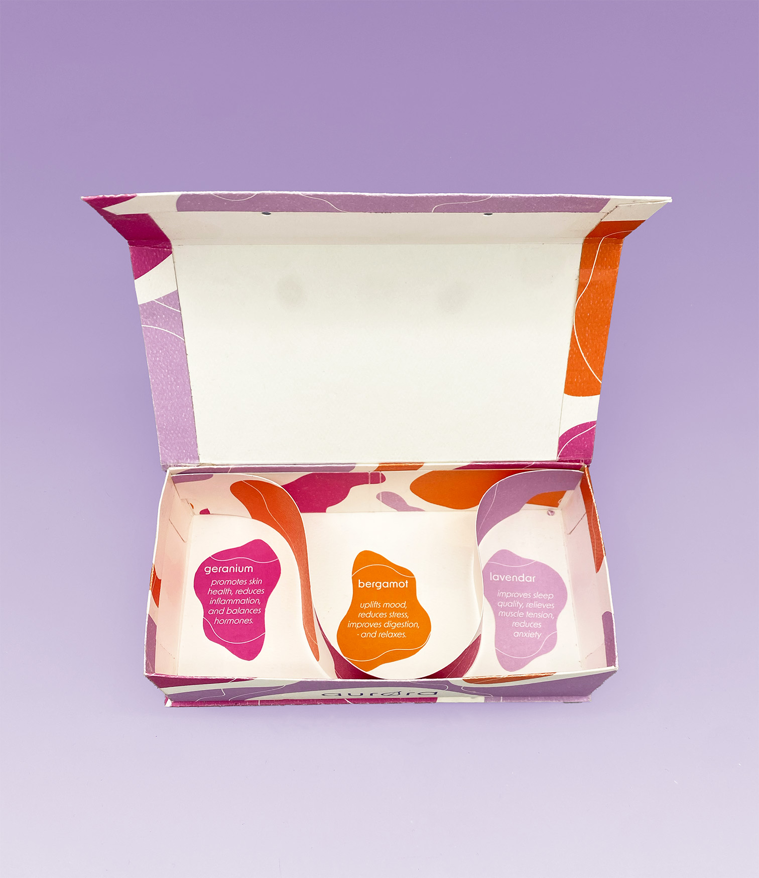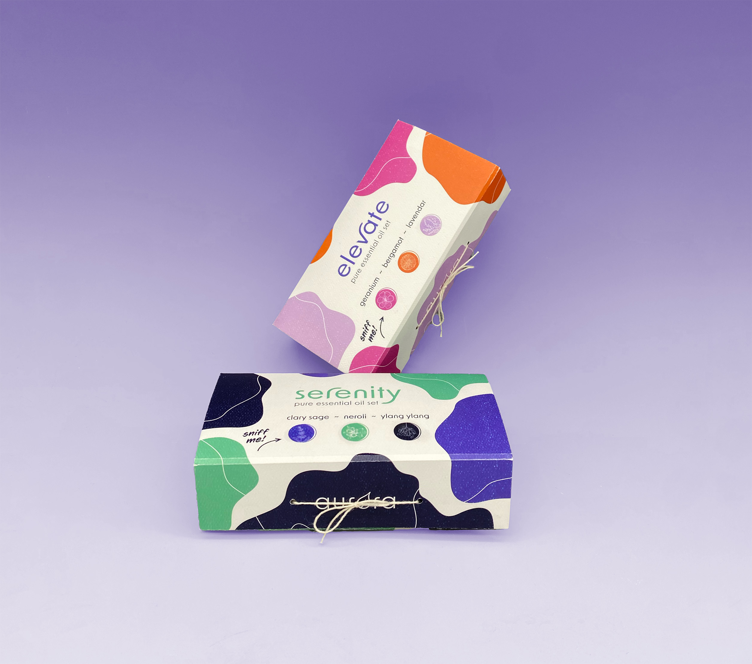 aurora combines a psychedelic, abstract design with scented packaging and inside labels to give the user a premium experience.
